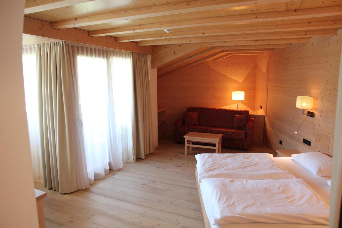Superior Double Room. Elegant and spacious room completely decorated with light wood. Features satellite TV and a balcony with mountain views. Address: Via San Linert 25 Check-in: Via San Linert 52 ;