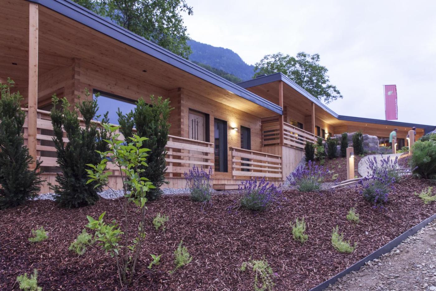 Chalet - annex. Featuring large floor-to-ceiling windows and a patio furnished with a wooden bath tub, this unit comes with a four-poster bed, a sofa and an electric kettle. The bathroom includes free toiletries. ;