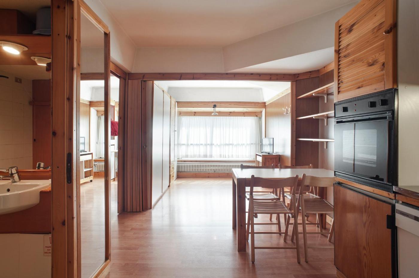 One-Bedroom Apartment. Check-in takes place at Agenzia Montana, Piazzale Pradalago 15, Marilleva 900, Mezzana. Apartment featuring wooden furnishings and tiled floors. It comes with a bathroom and a seatingdining area with TV and kitchenette. Apartment offers a hideaway double bed in the living room, plus a bunk bed and hideaway single bed in the bedroom. You can bring your own bed linen and towels or rent them on site.