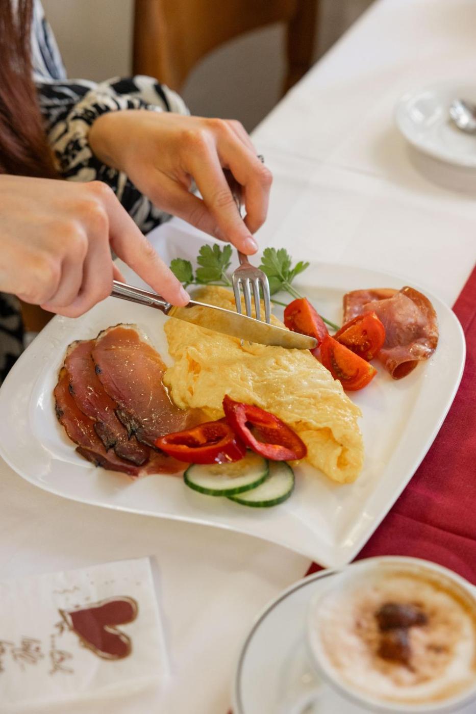 The guest house serves a buffet and continental breakfast and breakfast in the room is also available. There is a coffee shop, and packed lunches are also available.