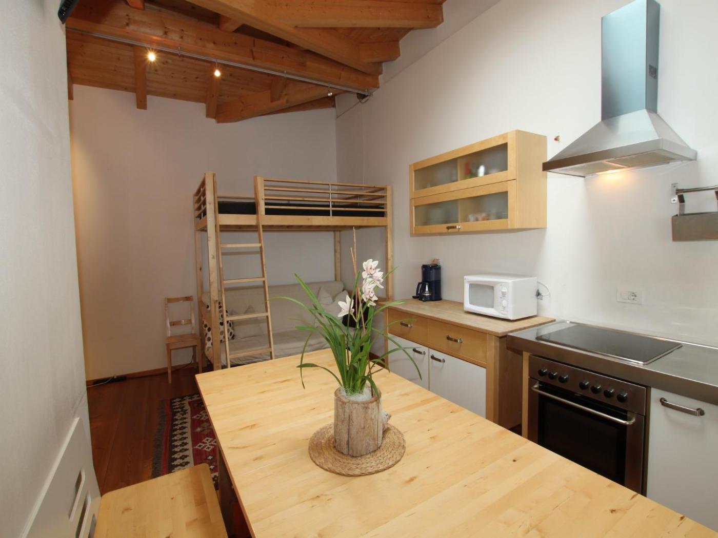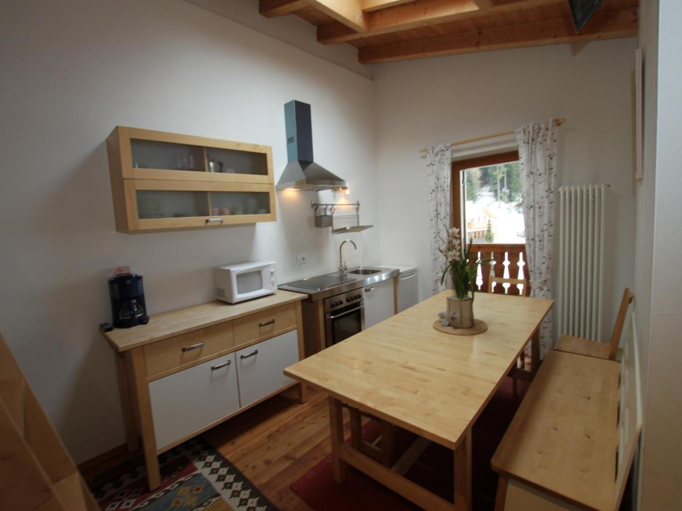 One-Bedroom Apartment (2 Adults). En suite apartment with a fully equipped kitchenette. Features a dining area, a TV and light wood furniture. Has a balcony overlooking the Dolomites mountains. ;