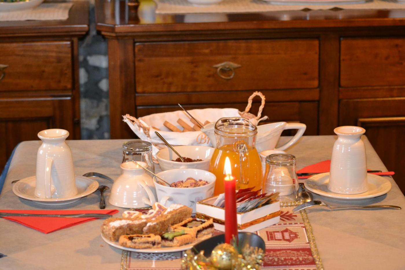 Breakfast prepared with homemade produce is served each morning in the dining room, with an additional cost.