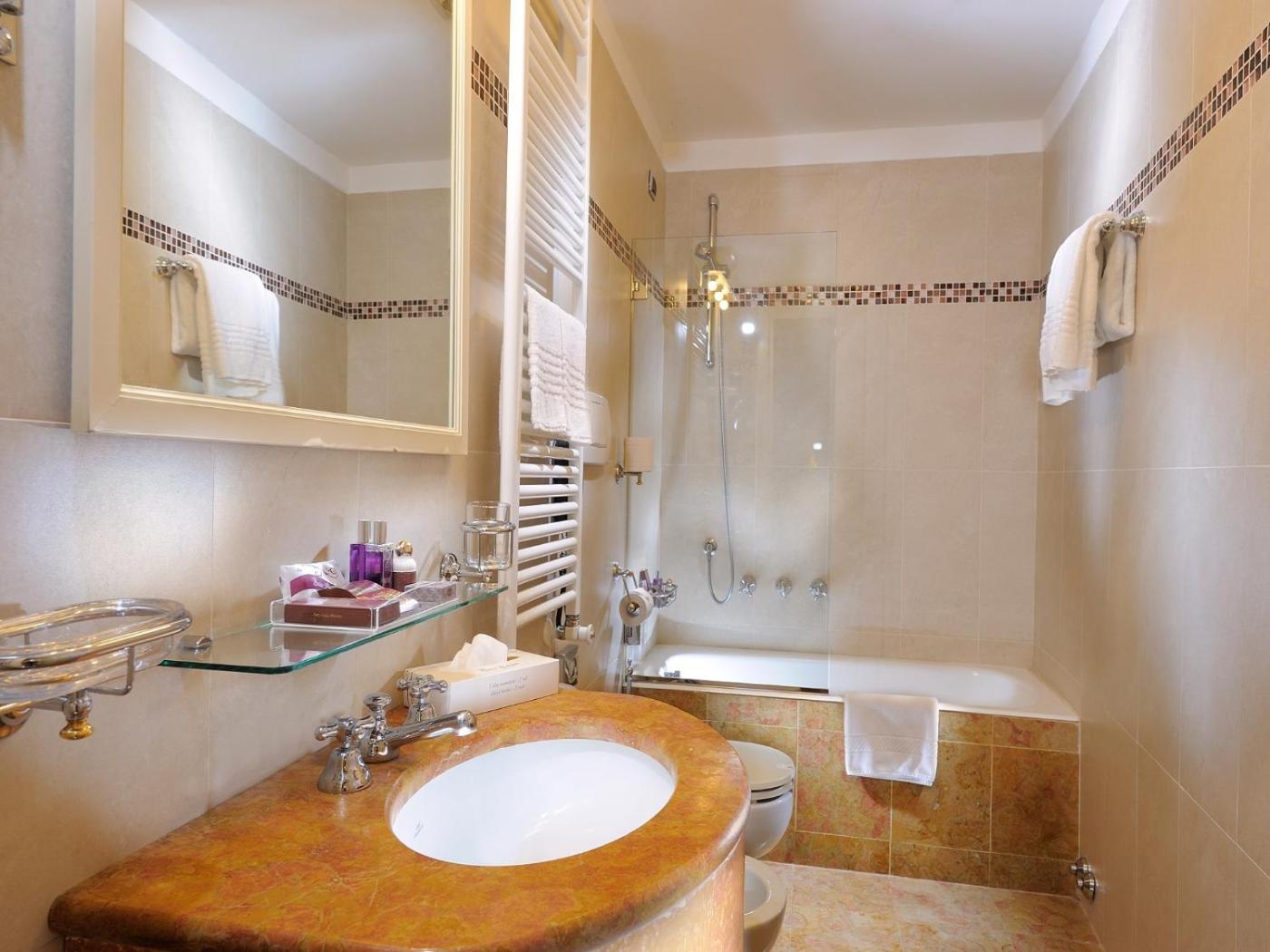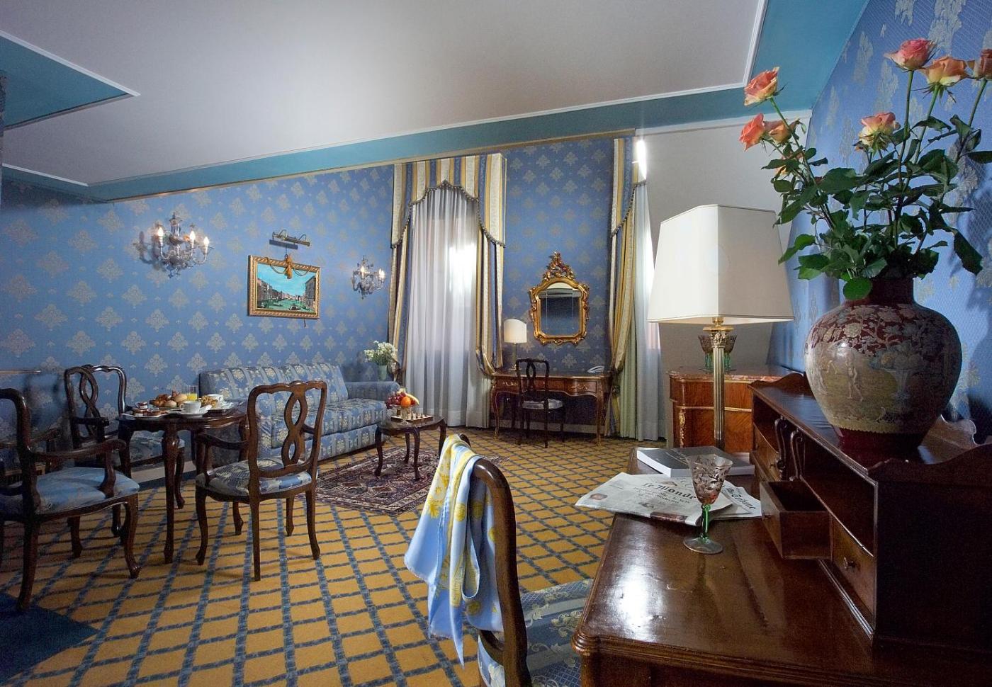 This 4-star hotel originally belonged to an aristocratic family, whose coat of arms can still be seen in the lobbys marble floor. The historic ambience is continued throughout the property with plenty of antique furniture and Murano glass chandeliers.